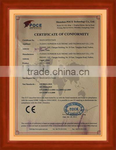 Fuzhou Superior Electronic And Technology Co., Ltd. is a professional manufacturer and exporter of CCTV security equipment and parts, including Mega Pixel Varifocal Auto/manual Iris lenses, IR Varifocal Auto Iris lenses, Varifocal Auto/manual Iris lenses, fixed Iris lenses and zoom motorized lenses; IP Cameras, IR Cameras, Dome Cameras, Box Cameras, All-in-one Cameras and DVR.